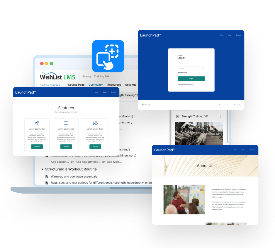 A built-in Setup Wizard helps you configure the essentials, the drag-and-drop course builder makes structuring your curriculum feel intuitive, and LaunchPad page styling tools automatically design key pages like your course library, login page, and student dashboard.